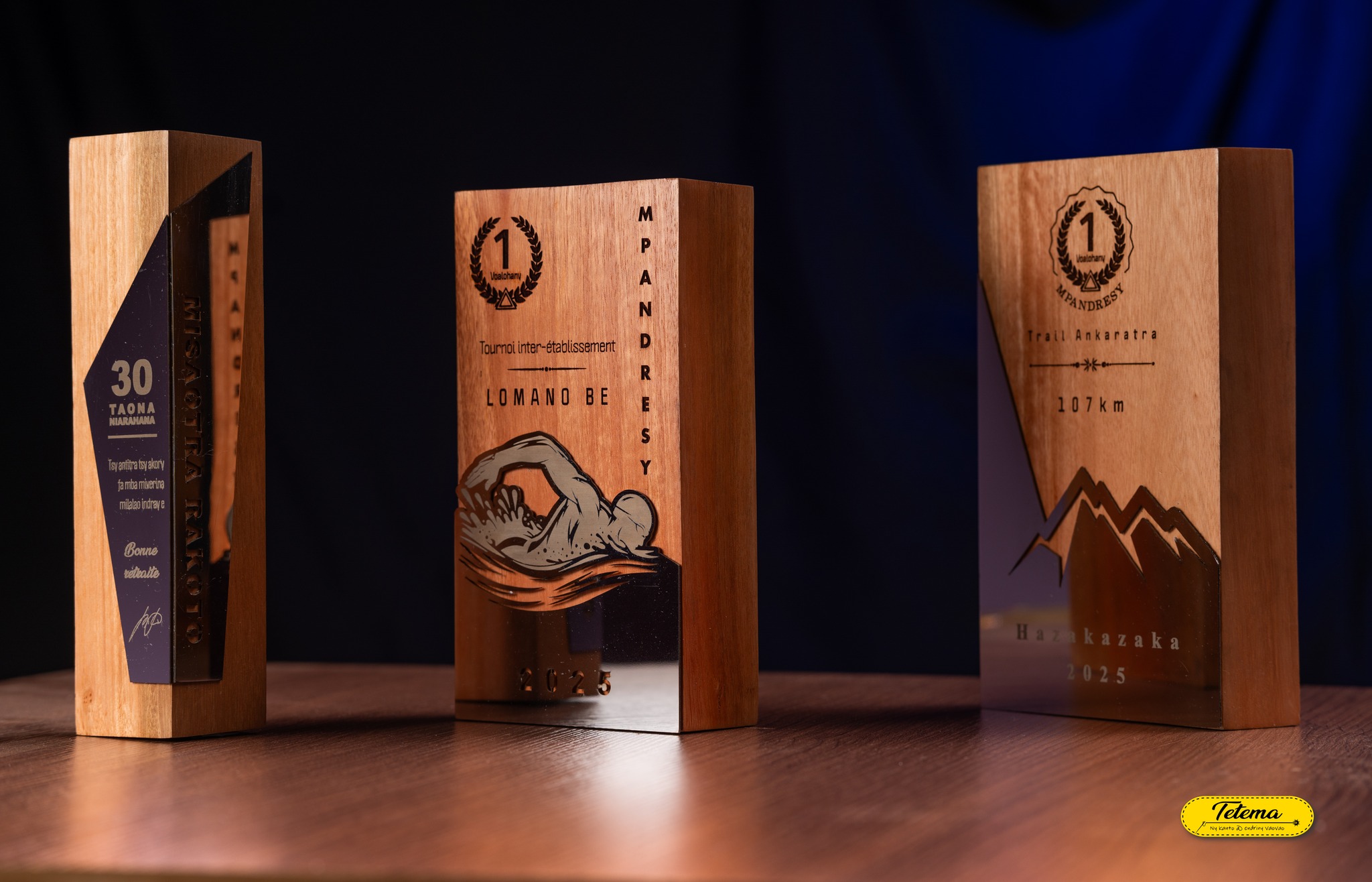 Trophées en Acrylique et Palissandre – 100% Personnalisables !